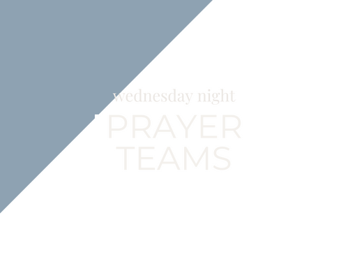 We invite you to join us on Wednesday nights from 6:30pm–8:00pm in the Conference Room. These meetings will take place weekly, as we take time to pray for various people and ministries in our church and around the world. This team is responsible for many of our anonymous prayer requests as well as pressing needs that arise in the church.